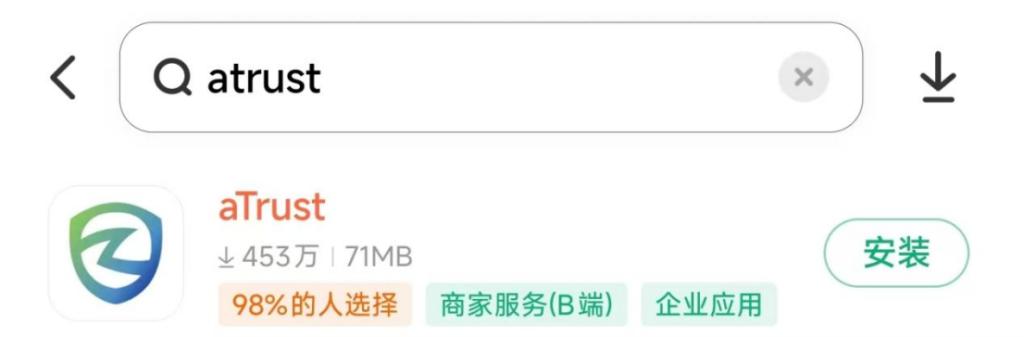 1.安卓:各大应用市场搜索“aTrust”,下载并安装