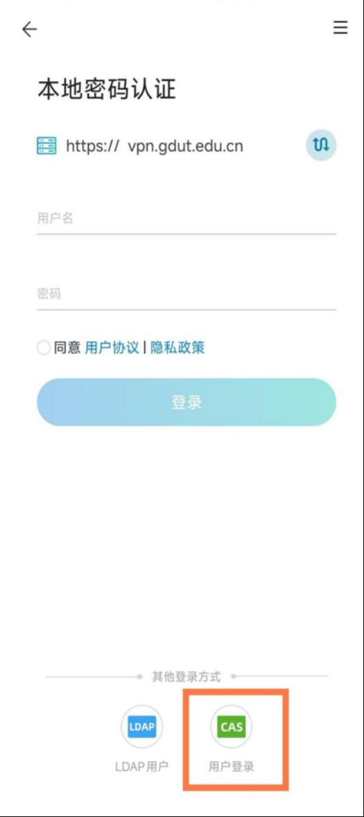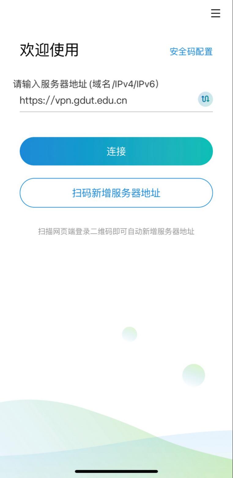 3.打开APP,配置学校服务器地址https://vpn.gdut.edu.cn