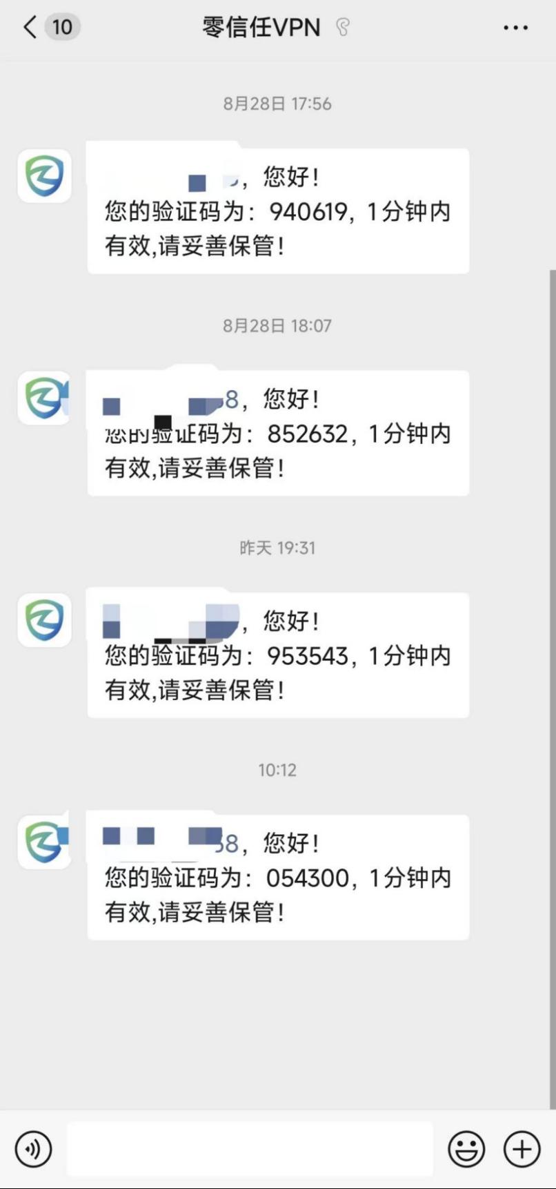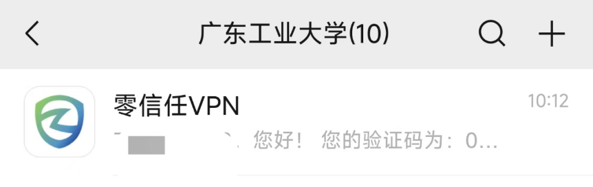 3.登录过程中,需要进行验证码验证,验证码会发向您统一身份认证绑定的企业微信,签到微信或者企业微信中查看微应用“零信任VPN”收到的验证码。
