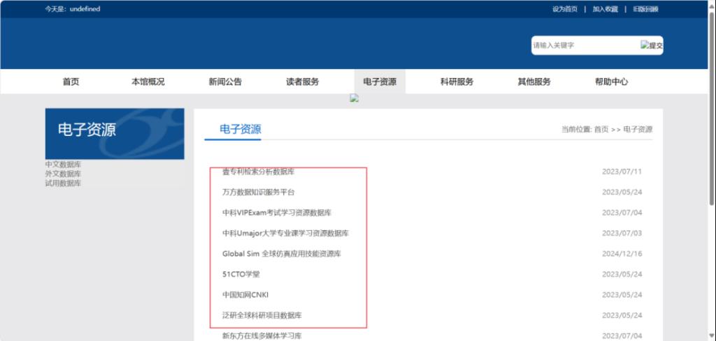 6.登录成功后显示如下界面,用户可以在页面选择校园网图书资源,也可自行在浏览器中输入校园网网站,进行使用