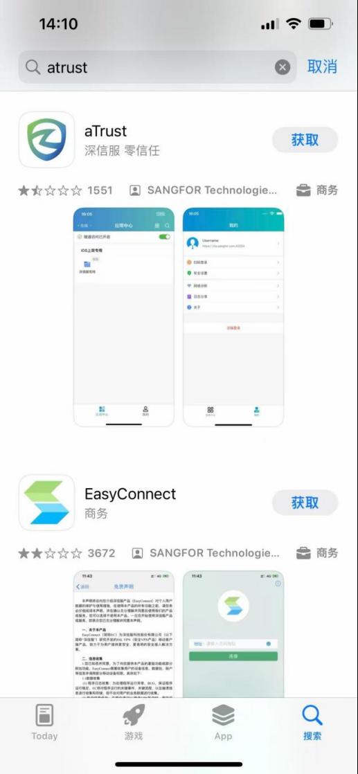 2.苹果:APP store搜索“aTrust”,下载并安装